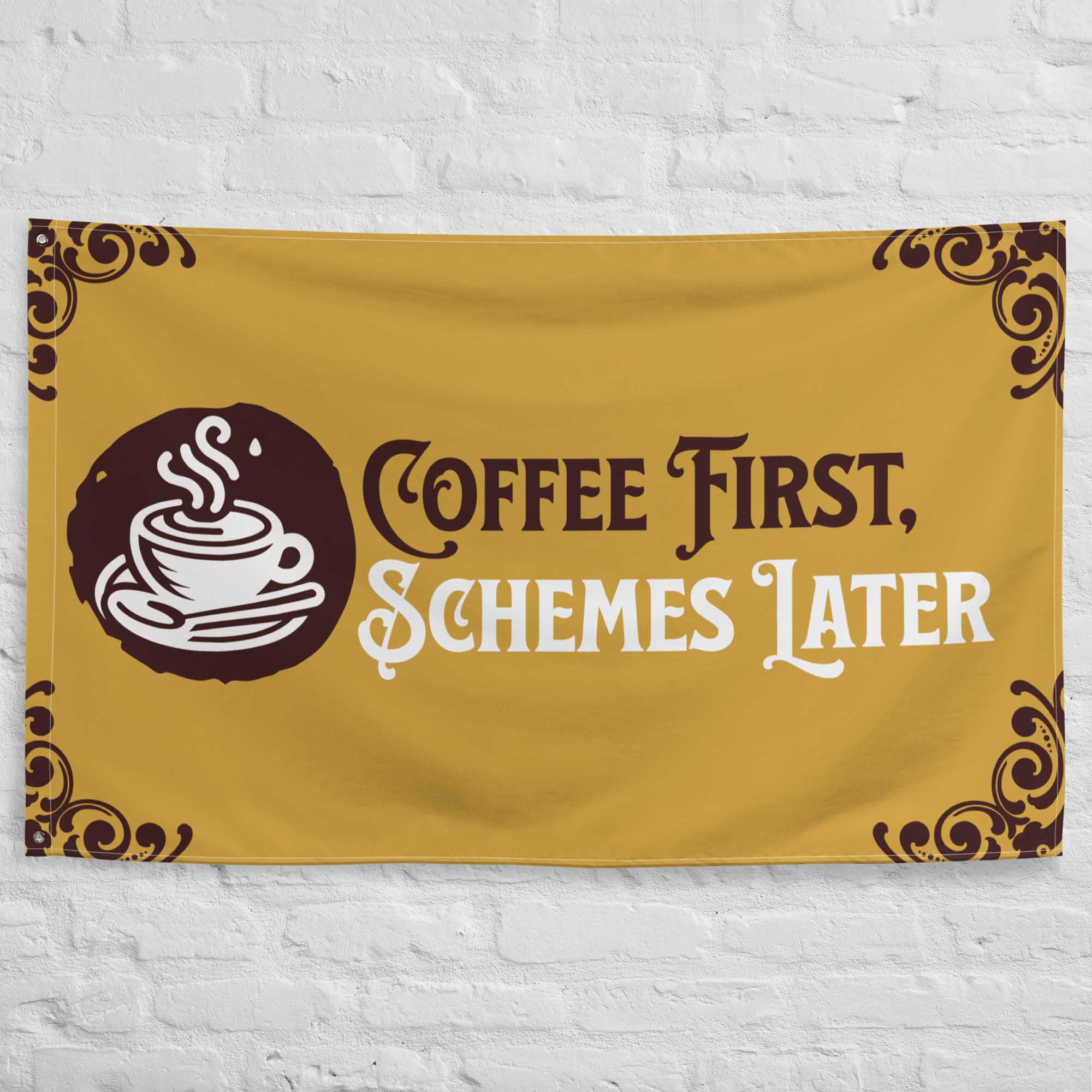 Vėliava su spauda. ‘Brew Before Plans’ dizainas