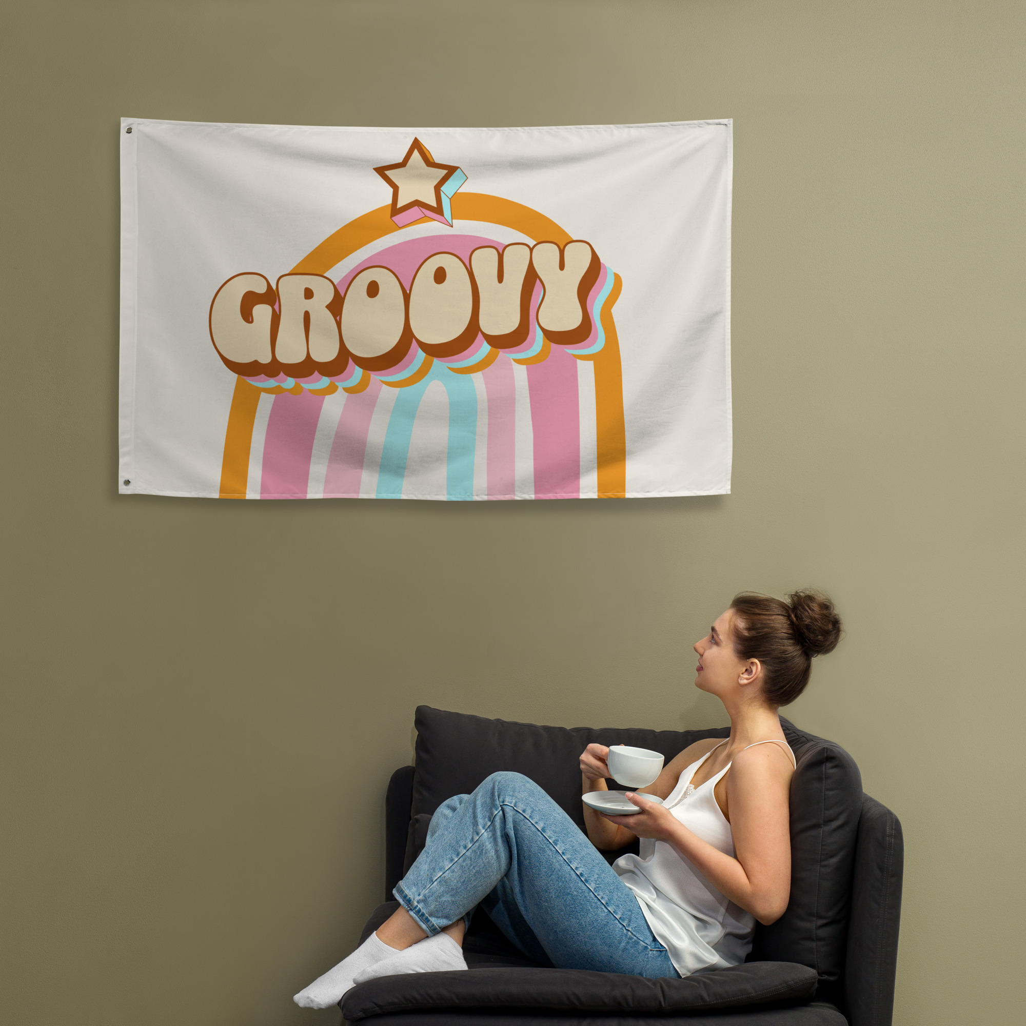 Vėliava su spauda. ‘Stay Groovy’ dizainas