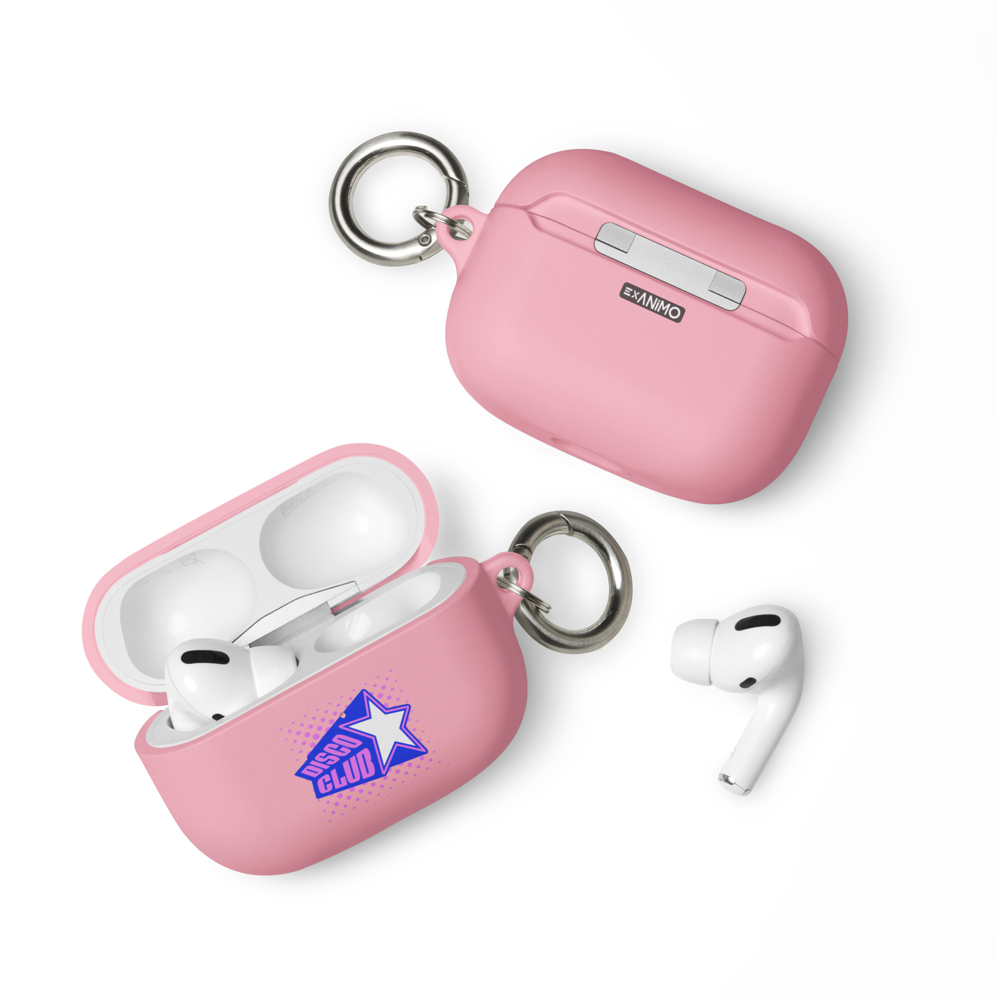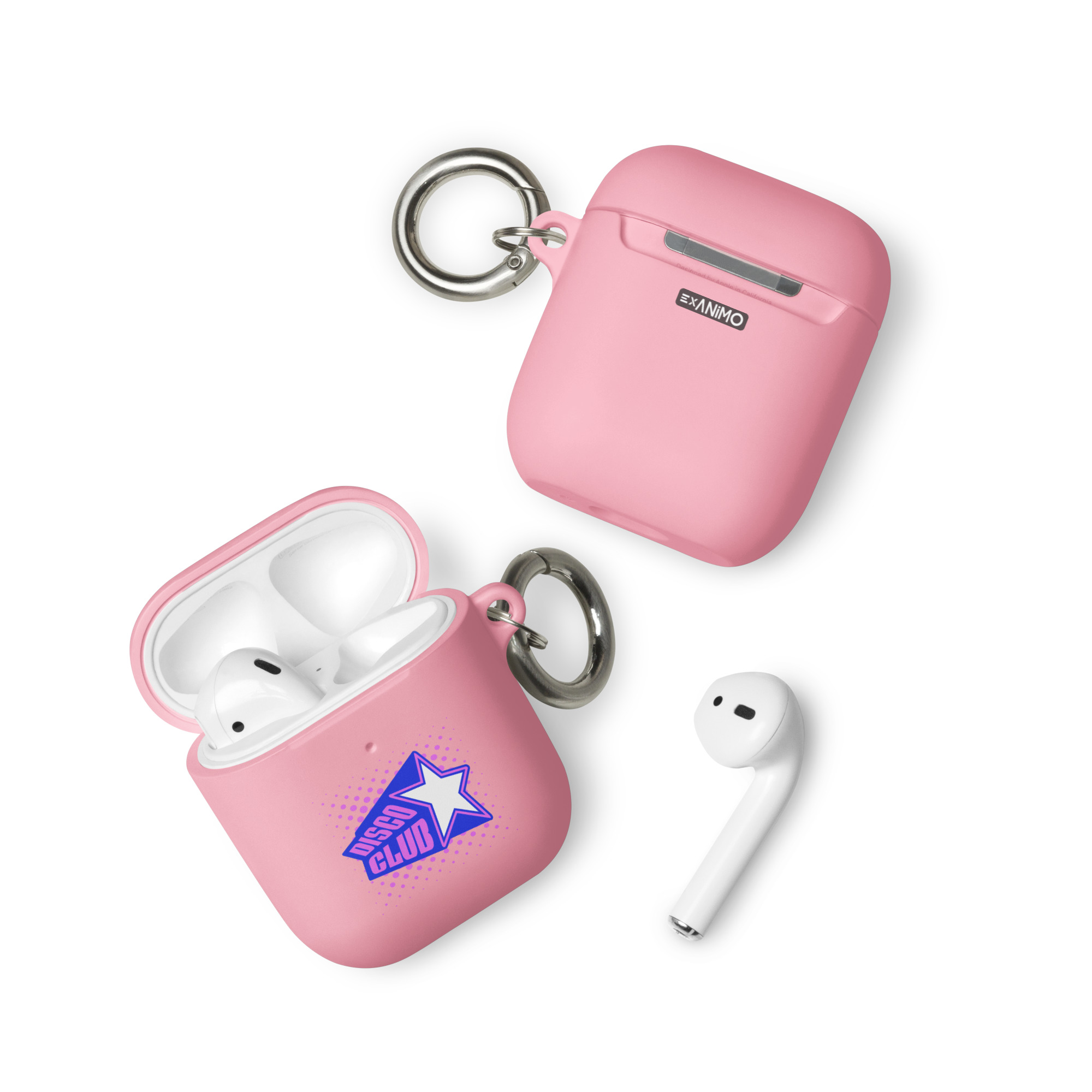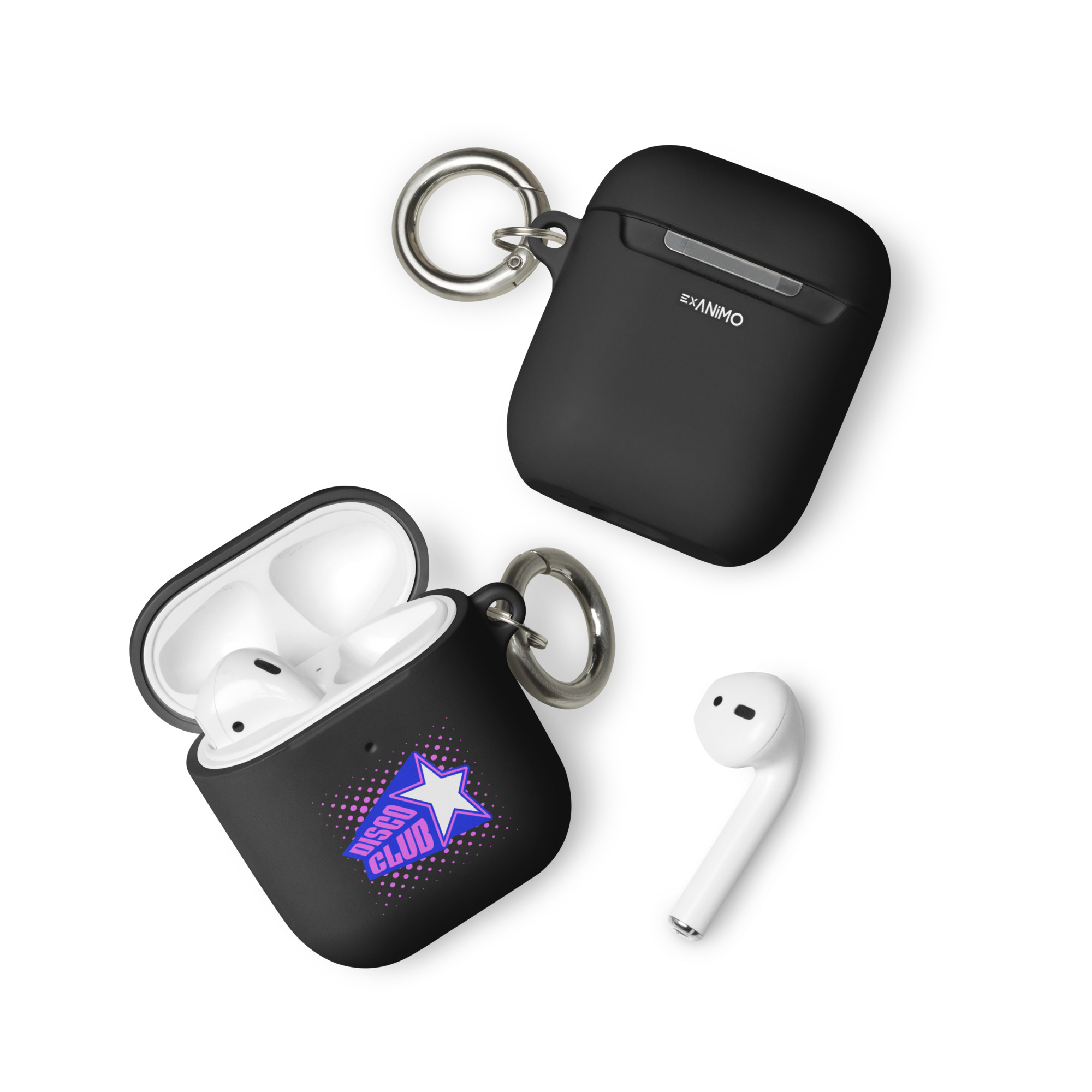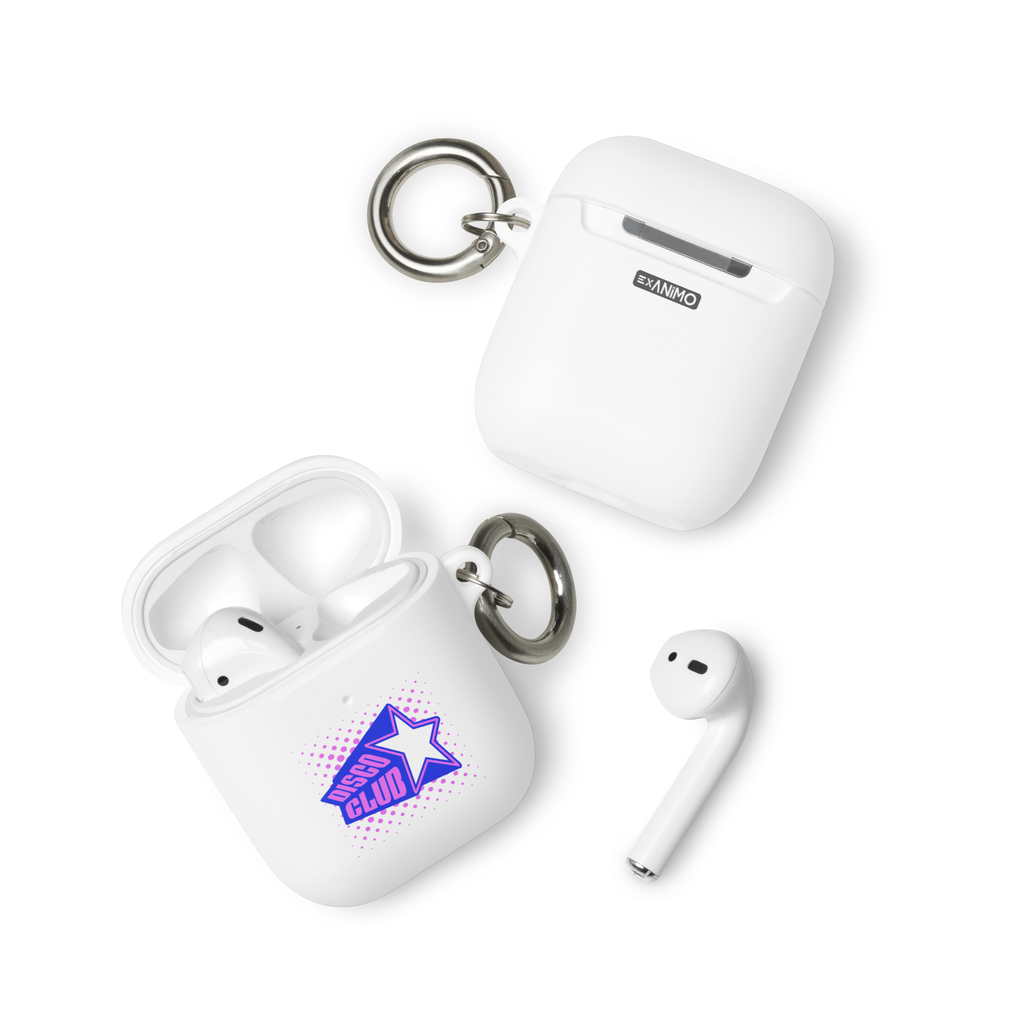Guminis AirPods dėklas su karabinu, įv. spalvų. ‘Disco club’
