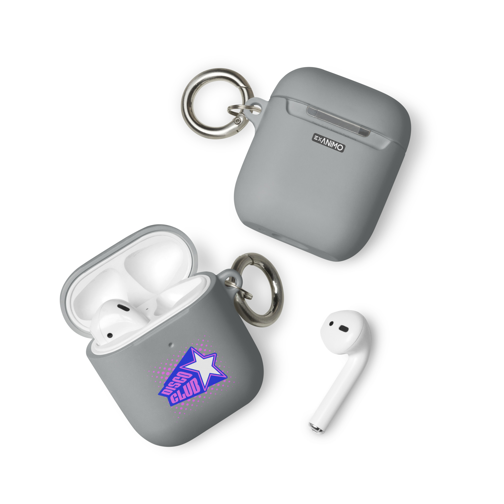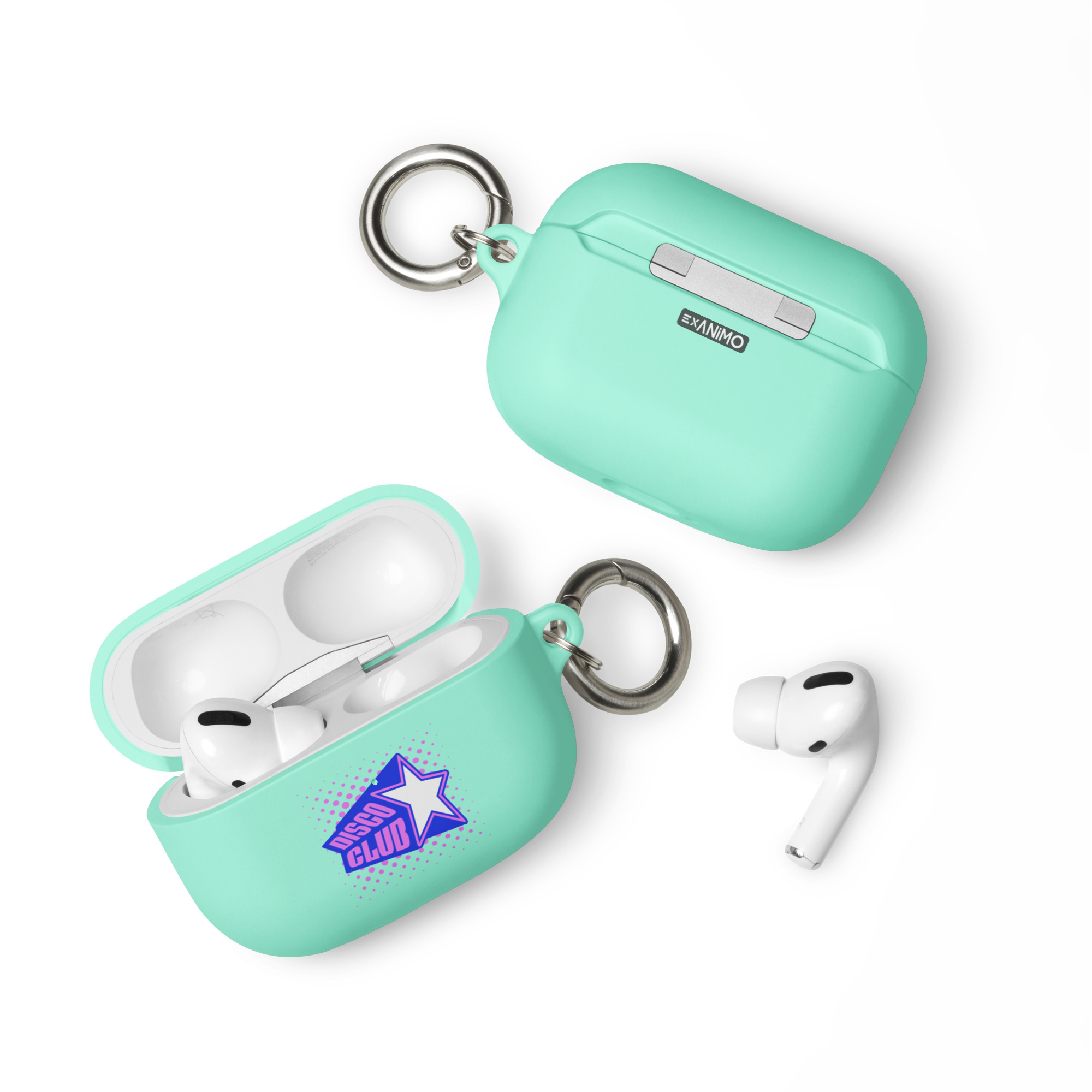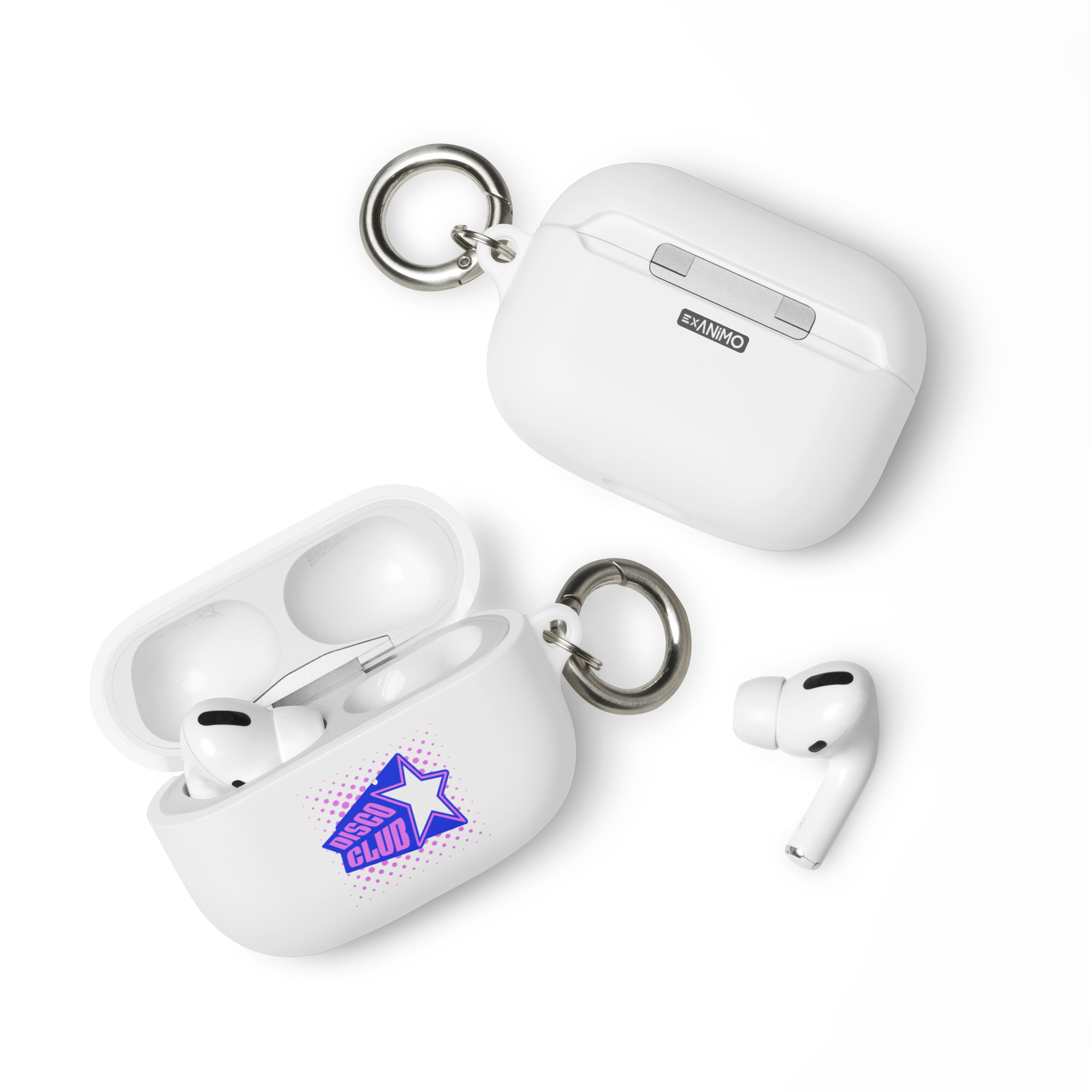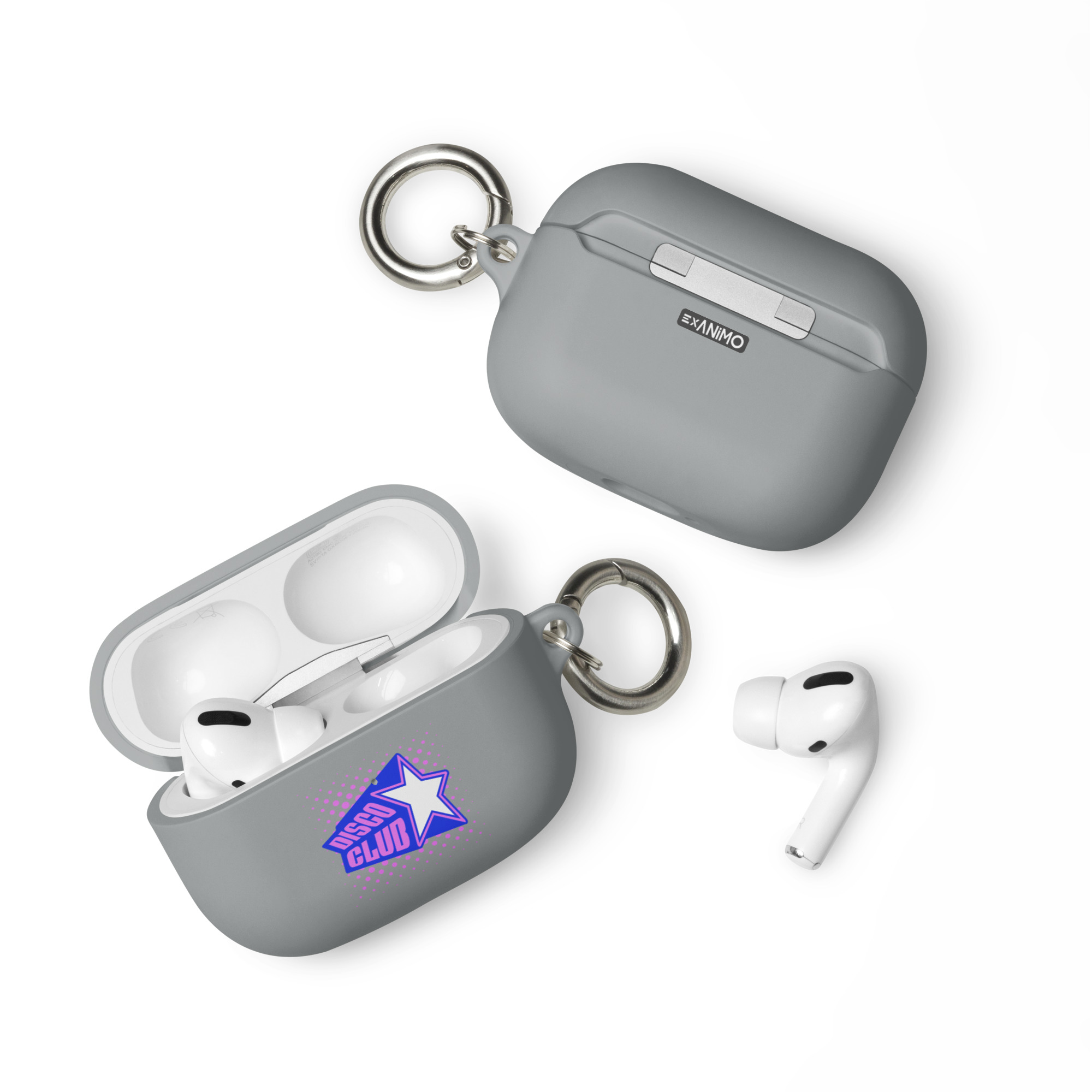 Guminis AirPods dėklas su karabinu, įv. spalvų. ‘Disco club’