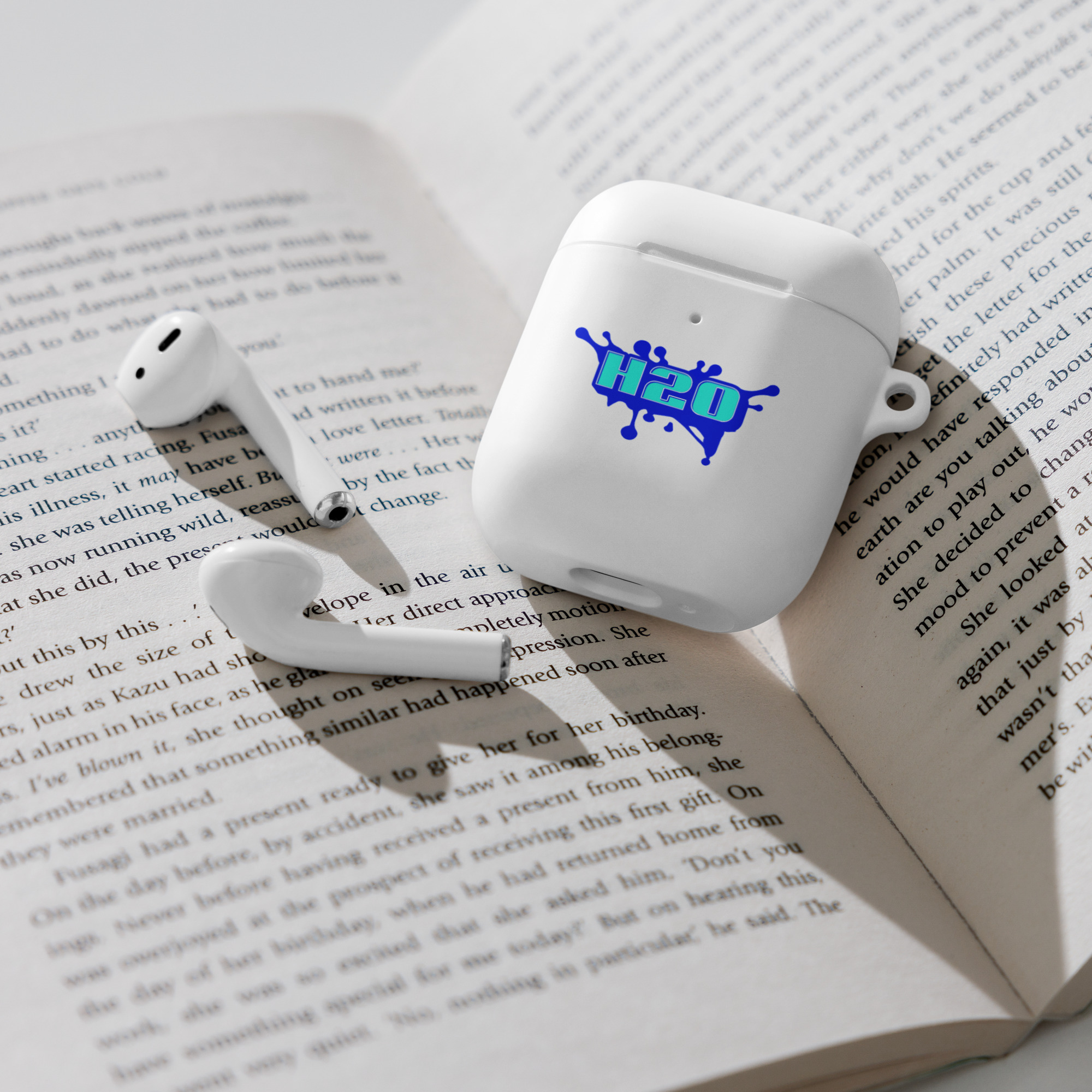 Guminis AirPods dėklas su karabinu, įv. spalvų. ‘H20’
