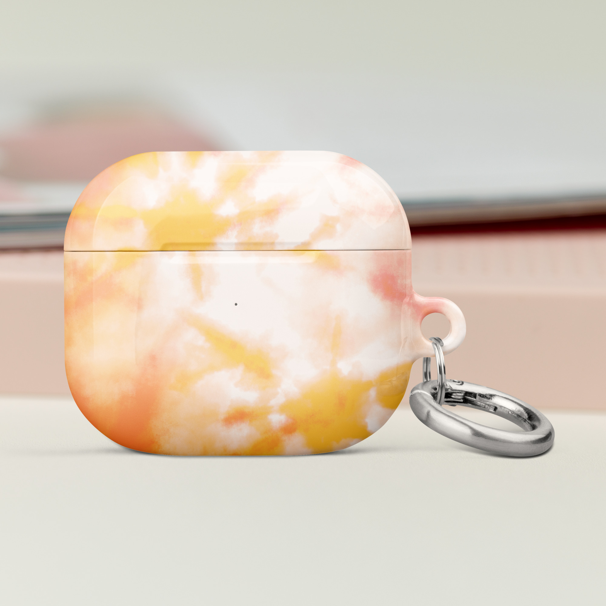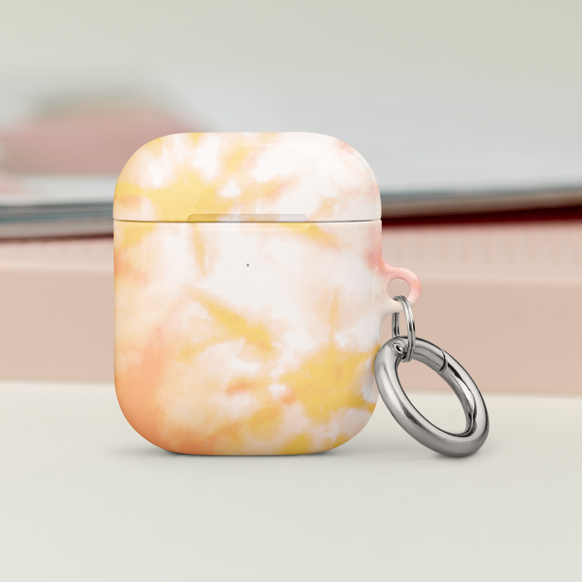 Kietas, plastikinis Airpodas dėklas. ‘Peachy Glow’ dizainas