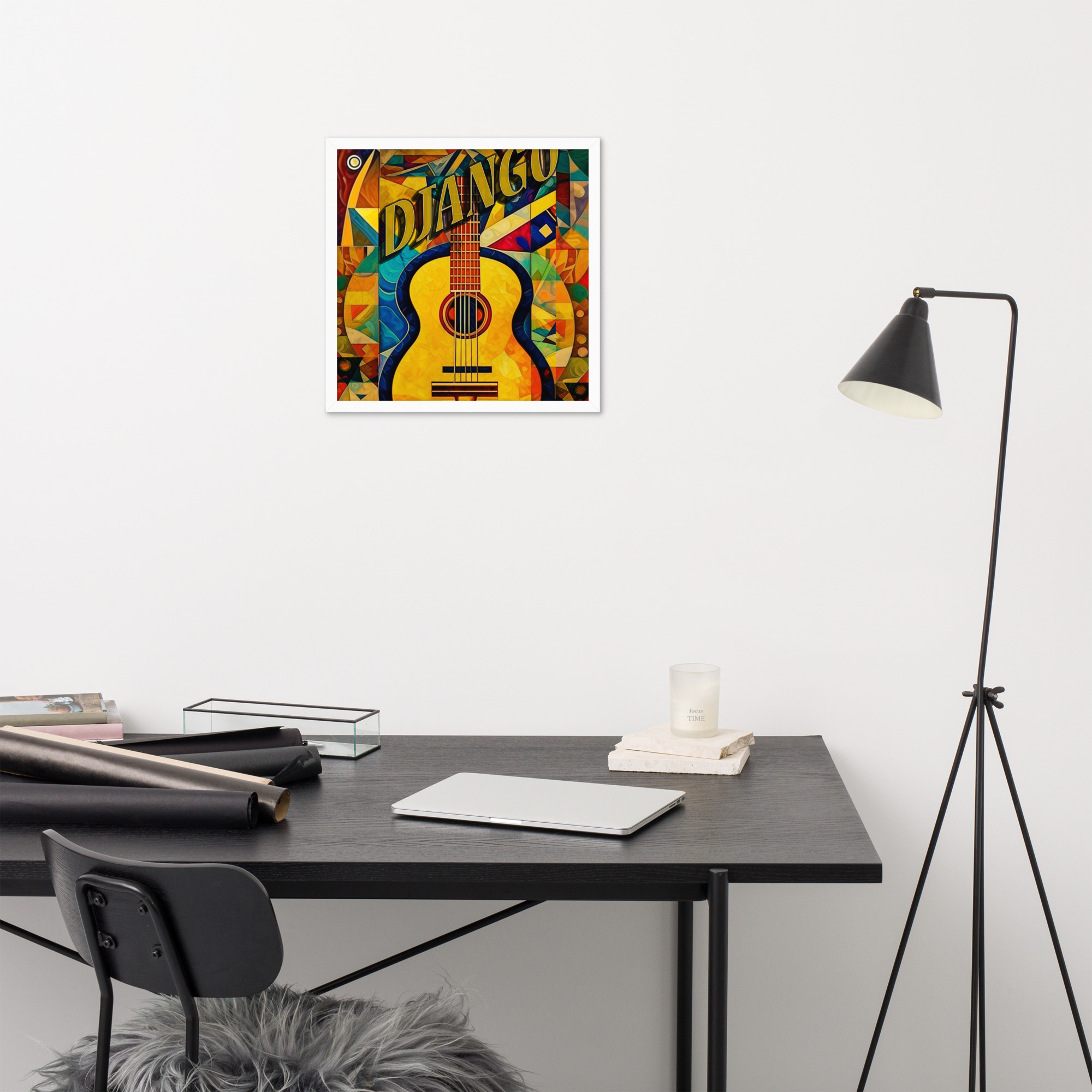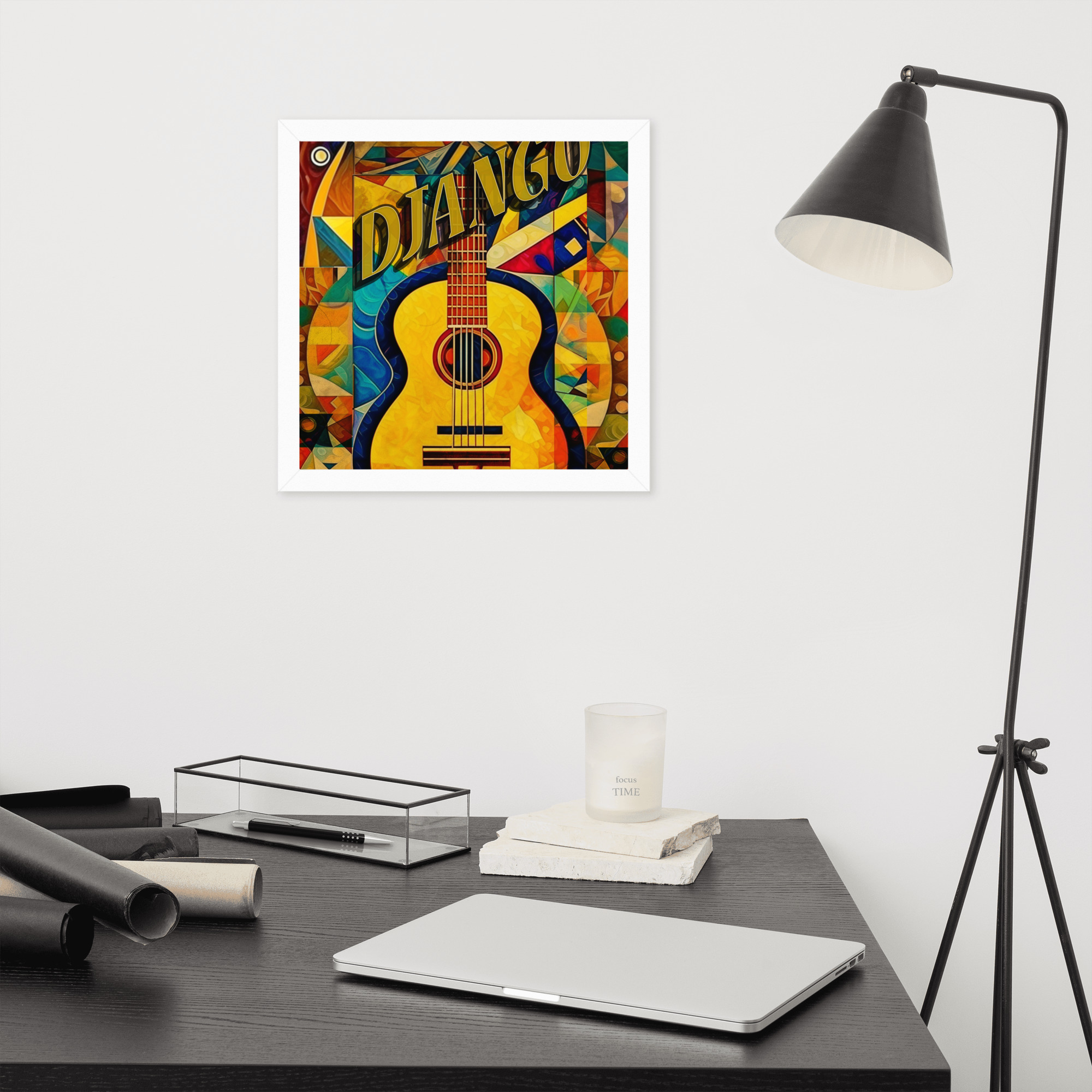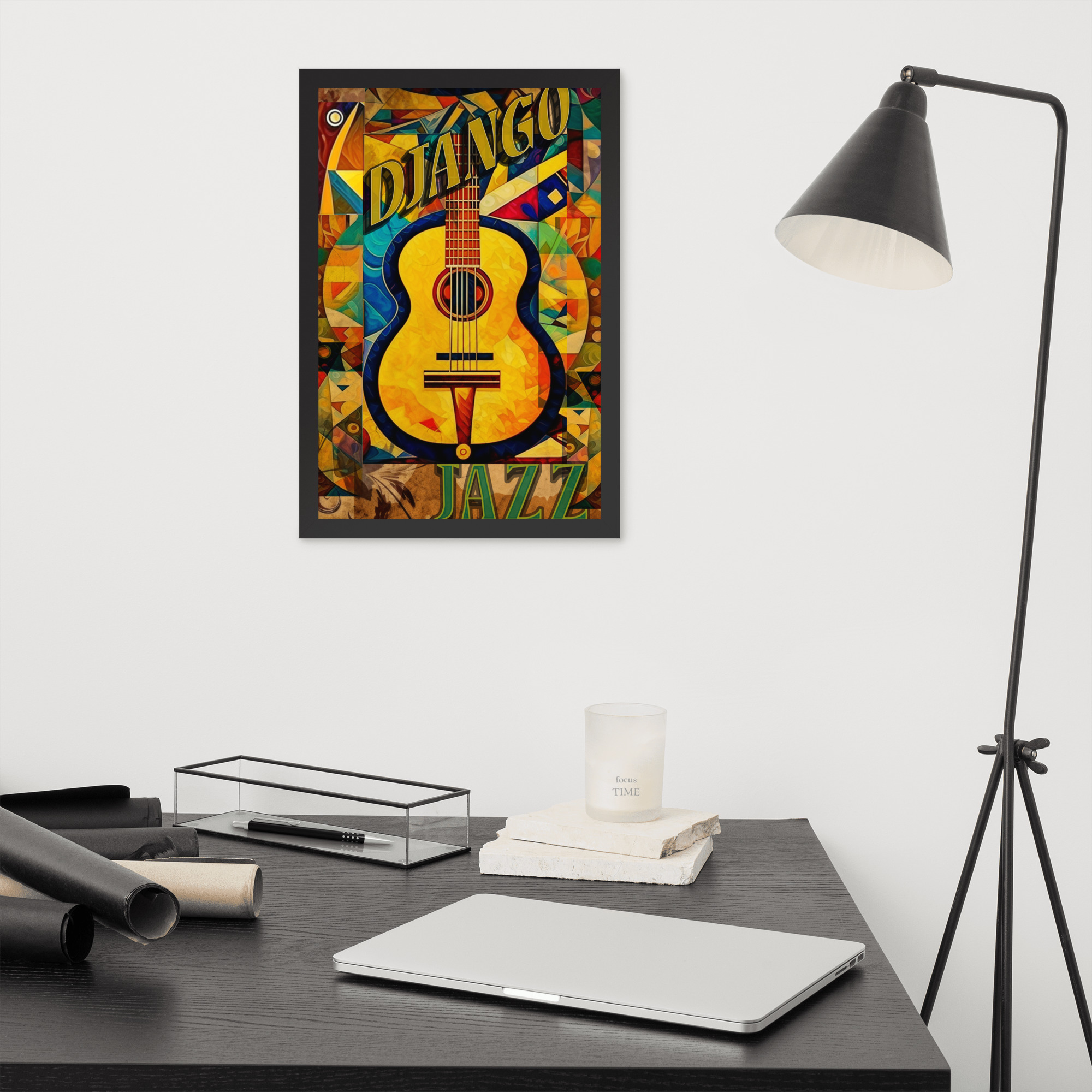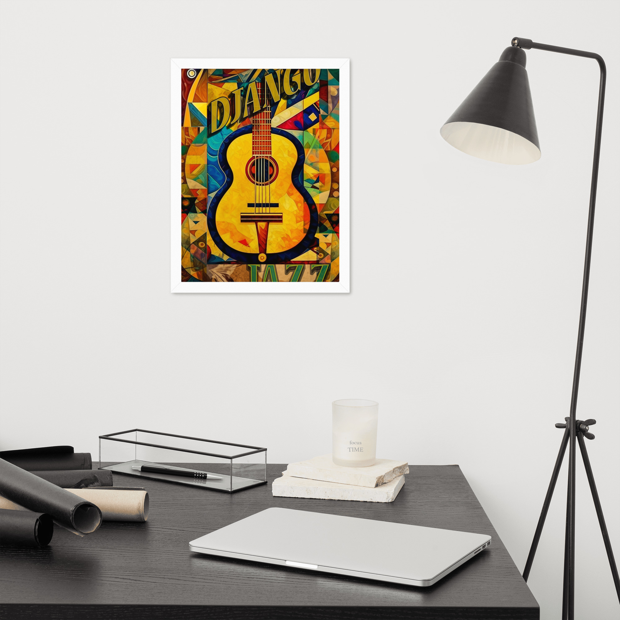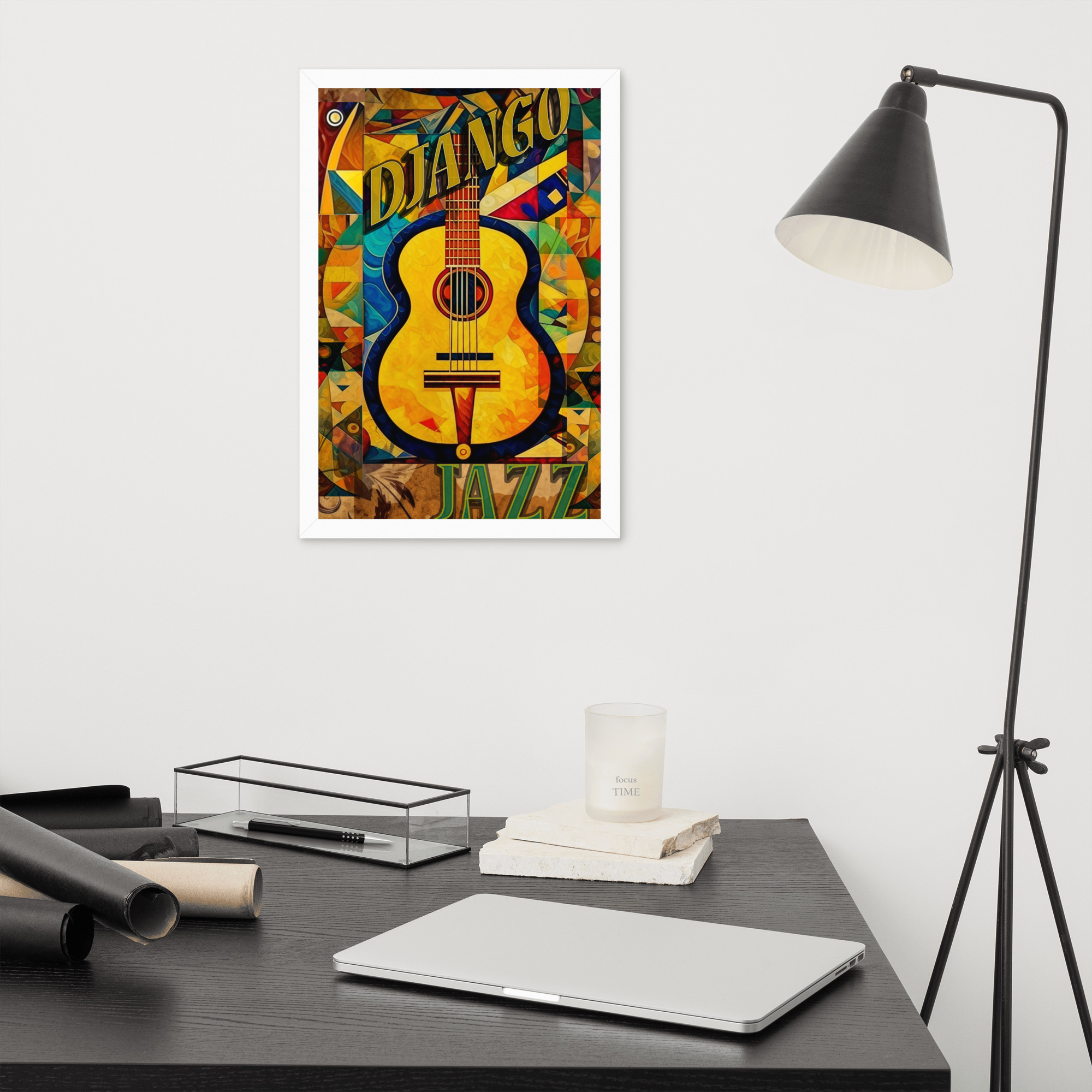 Foto popieriaus paveikslas su rėmeliu. ‘Django jazz’ dizainas