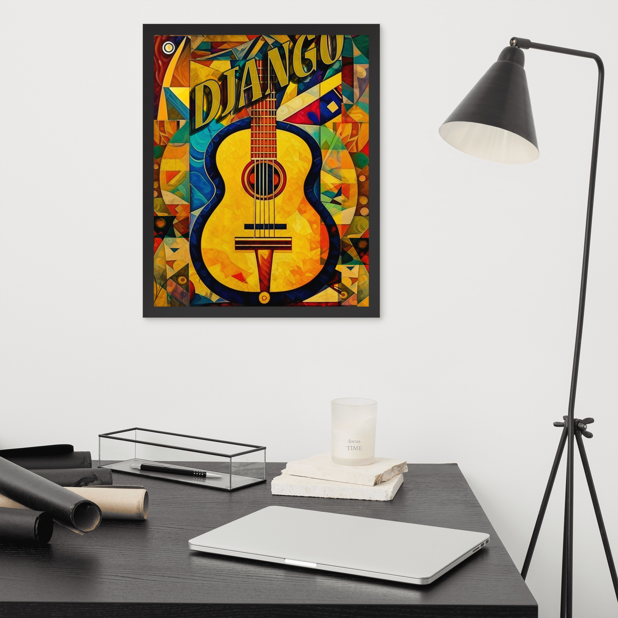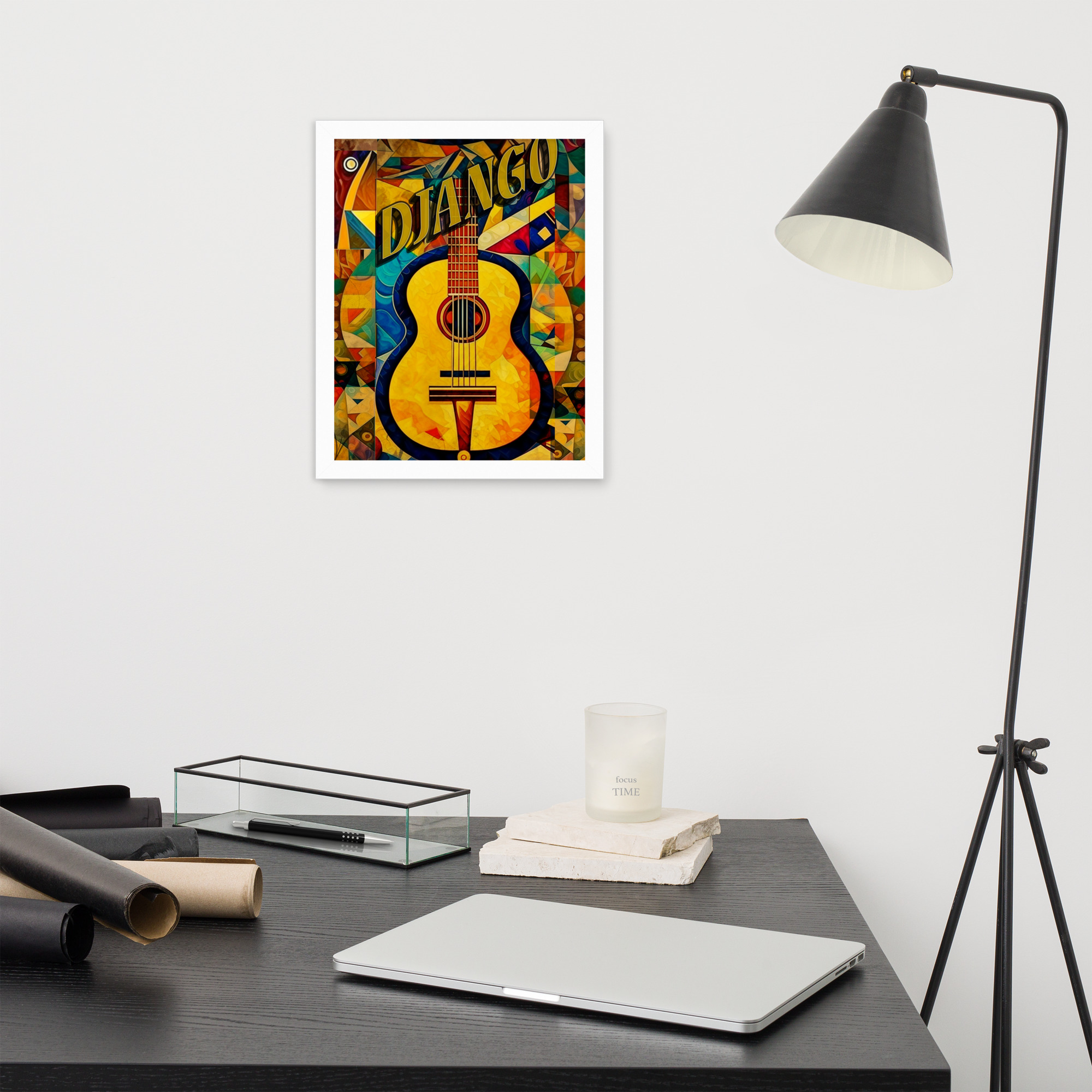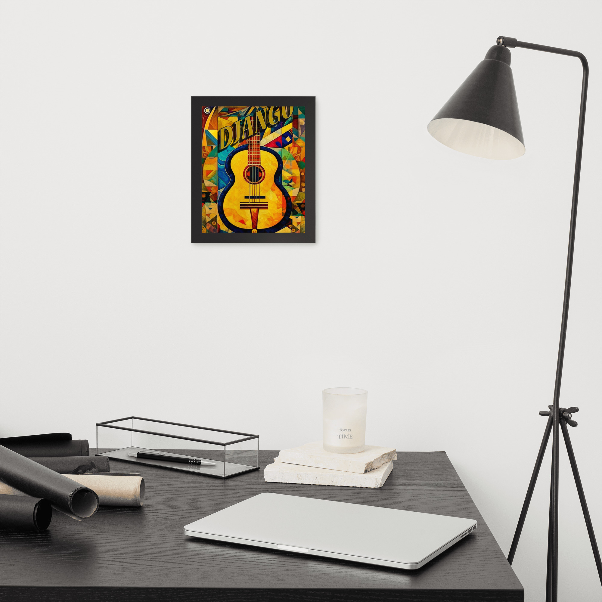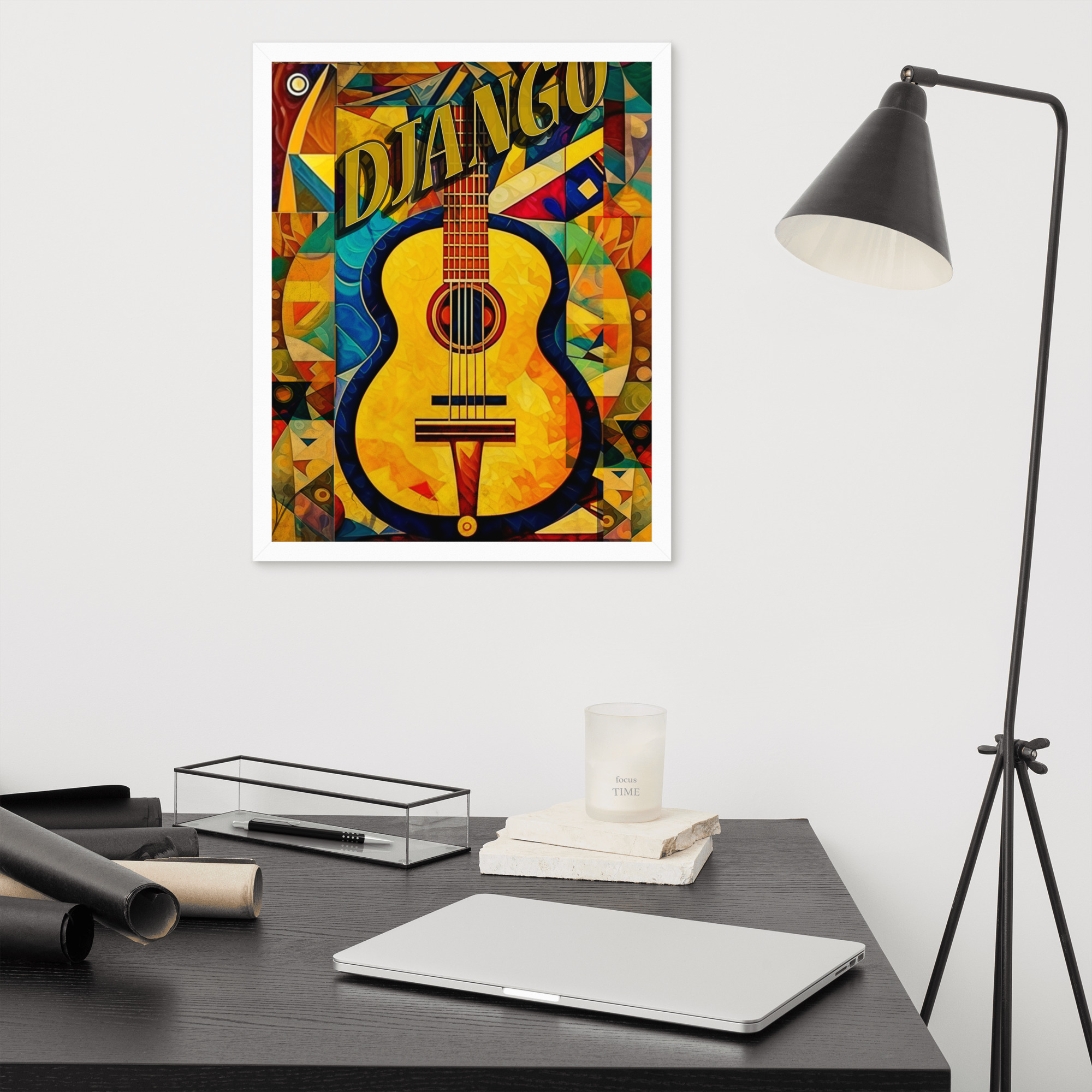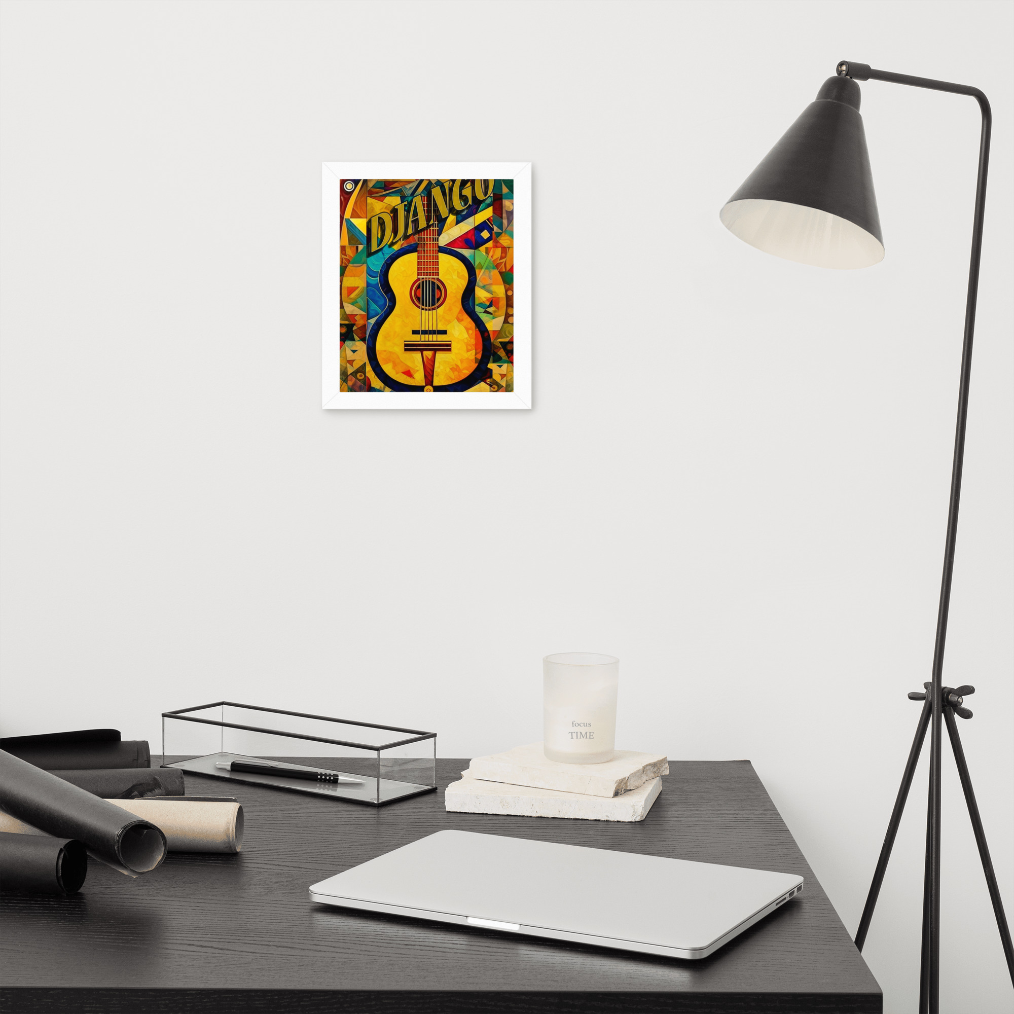 Foto popieriaus paveikslas su rėmeliu. ‘Django jazz’ dizainas